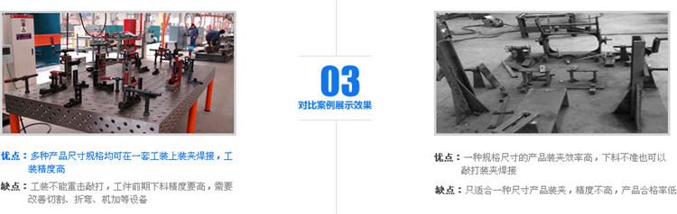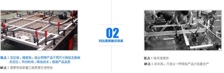 三維柔性焊接工裝簡(jiǎn)化了設(shè)計(jì)專(zhuān)用夾具的工作,大大的縮短了新產(chǎn)品的生產(chǎn)準(zhǔn)備周期,為單位小批量、多品種的生產(chǎn)開(kāi)辟了一條新的途徑。